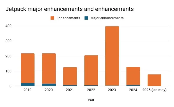 Also, for Jetpack, 2024 was a low point since 2019, and 2025 isn’t looking much better regarding new or enhanced features.